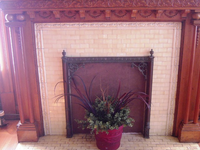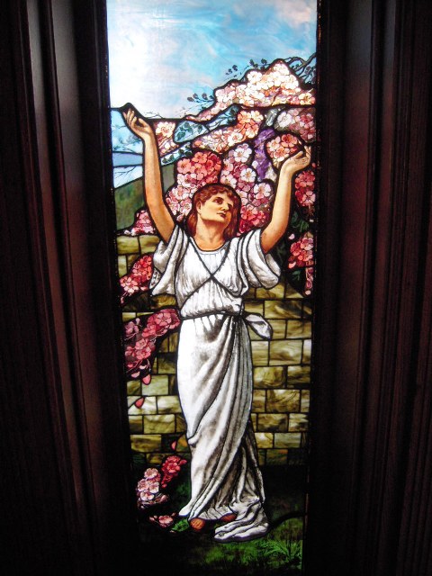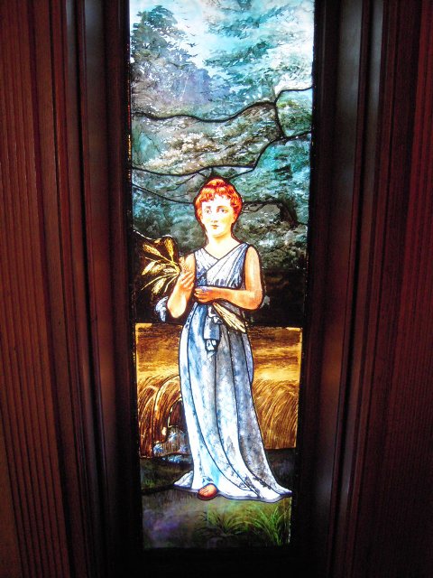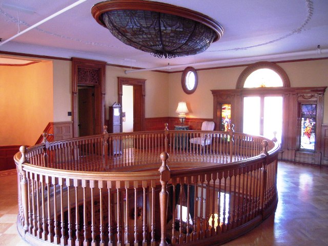 staircase, stained glass, and millwork