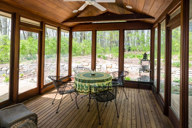 OFFERED FOR THE FIRST TIME IN GENERATIONS 1.198 ACRES ON GREENBELT A breathtakingly beautiful setting will lift your spirit as you enter the crushed stone drive. Tucked away at the end of one of the Village’s most convenient cul de sac’s the property is enveloped by Green Spaces! Knowing how rare the opportunity is to find a well priced, manageable, and updated one floor plan in the village, the current owners snapped it up the day it was listed over 30 years ago. It has been a love affair ever since…please enjoy their letter to you here…it offers a very special insight into their story. Perfect glass walls create a veritable work of art in every season. The home’s 2496 square feet is one delight followed by another. A dual fireplace separates the light filled solarium from the living room, the newly updated cook’s kitchen offers impressive sophistication to include Bosch & Thermador, a “wow” oversized screened porch in redwood, carefully updated baths & 4 bedrooms punctuated by abundant skylights, and storage to die 4, all on one level. What a value!          .jpg)   .jpg)